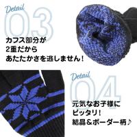 | 汚れがつきにくい!撥水加工キッズのびのび手袋♪ | | ストレッチ性に優れたキッズのびのび手袋♪撥水加工を施しているので、水をはじき、汚れが付きにくい仕様になっています。デザインは毎年定番人気の結晶柄です♪色展開はチャコールグレー、ホワイト、レッド、ネイビー、ブルーの全5色からお選びいただけます。大人の手がはめられるくらい生地の伸縮性の高さが特徴です。安心安全の日本製。 |