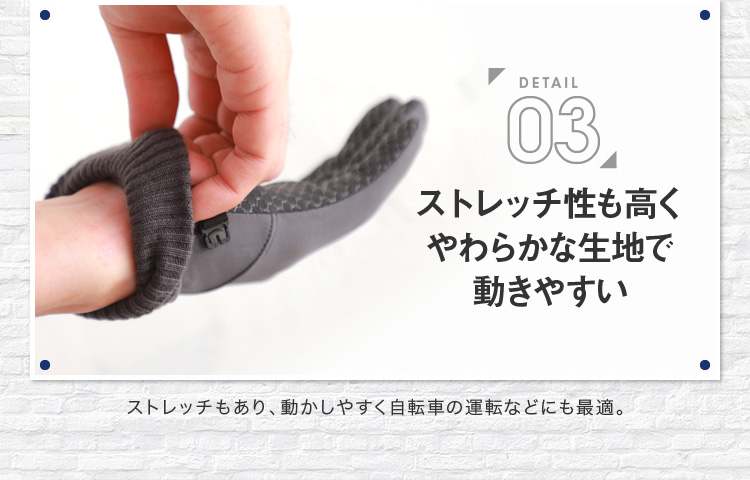 スッキリとしたシルエットでぴったりフィットするストレッチ性抜群のメンズ手袋。しっかりと手になじみ、動かしやすく、自転車の運転などにもおススメ。人差し指の先端がタッチパネルに対応しているのでスマホの操作も可能です。同じデザインでキッズサイズもあるのでお子さんとお揃いでアウトドアレジャーもいかがでしょうか?優れた多機能性をプラスしたGlovesDEPOのメンズグローブ、サイズはMとLの2サイズ、カラーはブラック、ブルー、ピンクの3色をご用意しております。