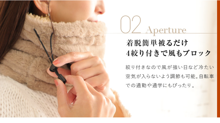 絞り付きなので風が強い日など冷たい空気が入らないよう調節も可能。