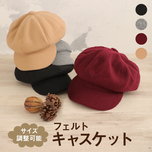 フエルト素材で大人可愛いスタイルにぴったりなレディースキャスケット。