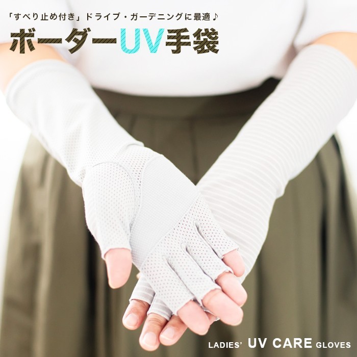 通勤・ドライブ・ガーデニングなど紫外線から手元をしっかりガード。総丈30cm丈で通常のショート丈より長めです(大体手首と肘の中間より長めとなります)。