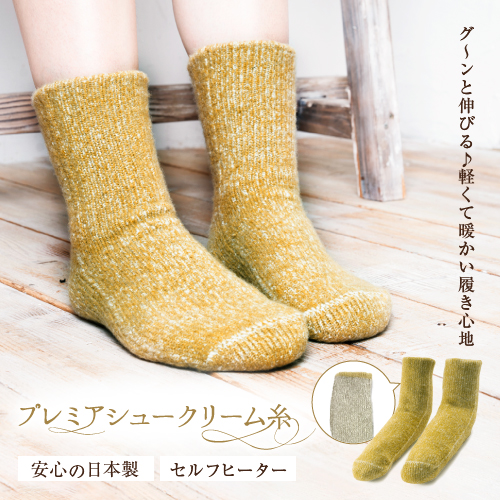 てぶくろ屋さんがつくった「プレミアムシュークリーム糸使用あったかルームシューズ」
