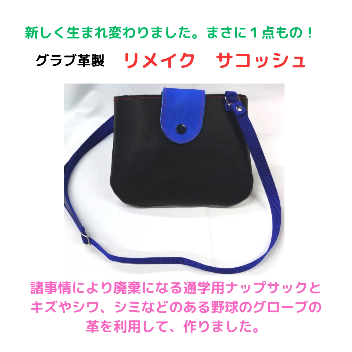 ★諸事情により廃棄になる通学用ナップサックとキズやシワ、シミなどのある野球のグローブの革を利用して、作りました。