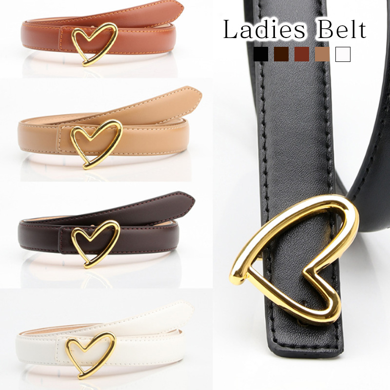 ベルト レディース 細 ハート おしゃれ 105cm ゴールド バックル レザー 細い 白 ゴルフ 女性用 カジュアル 黒 白 ブランド 大きいサイズ ワンピース用
