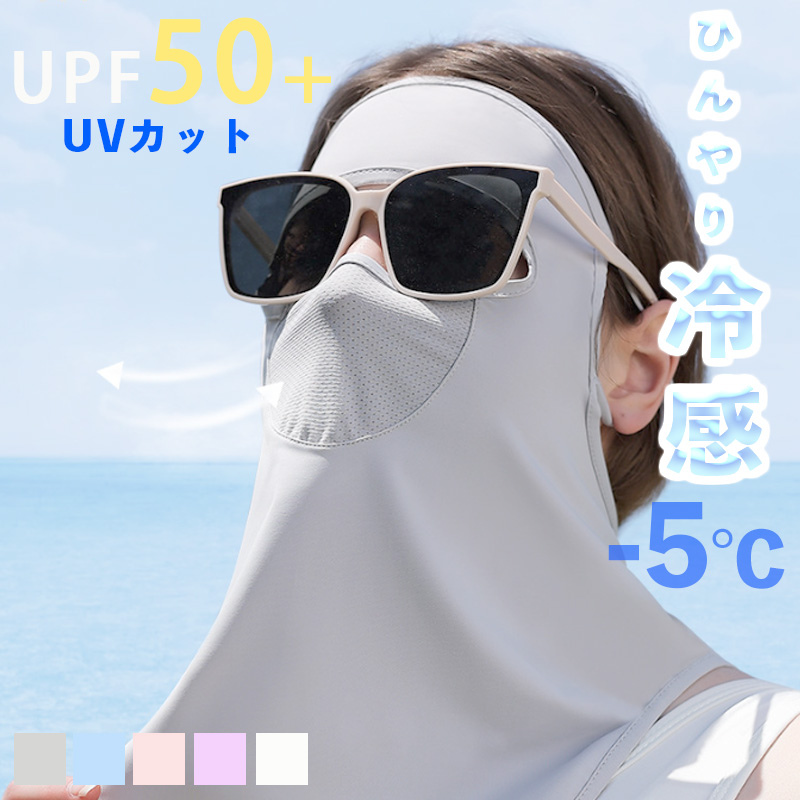 フェイスカバー UVカット 冷感 -5℃ 遮光 紫外線 ゴルフ スポーツ マスク 日焼け防止 日よけ 呼吸しやすい 完全ガード おしゃれ 顔 首 アレルギー肌 自転車