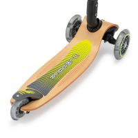 走るとタイヤがキラキラと光る、子供用の木製キックボードです。