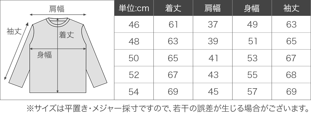 48(Mサイズ:着丈63cm、肩幅39cm、身幅51cm、袖丈65cm)