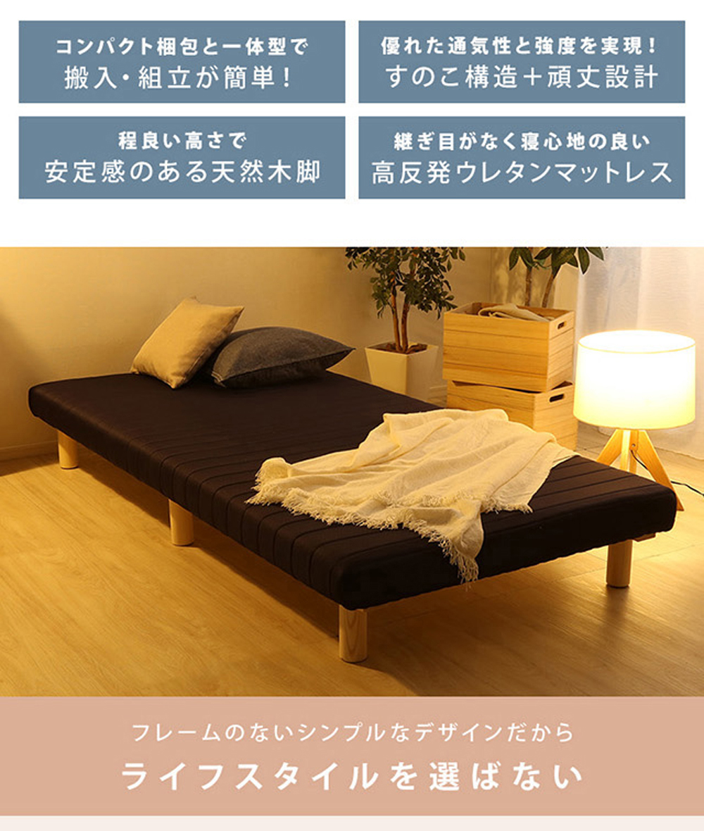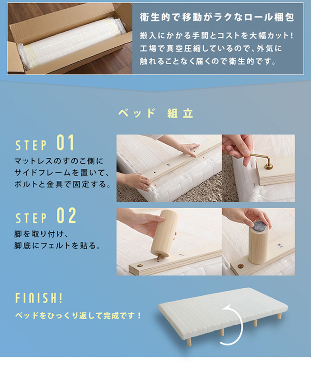 正規販売店 HOME taste ホームテイスト ロールマットレスベッド 脚付き セミシングル 組立簡単 ウレタンマットレス 天然木脚 高反発 通気性 メッシュ生地