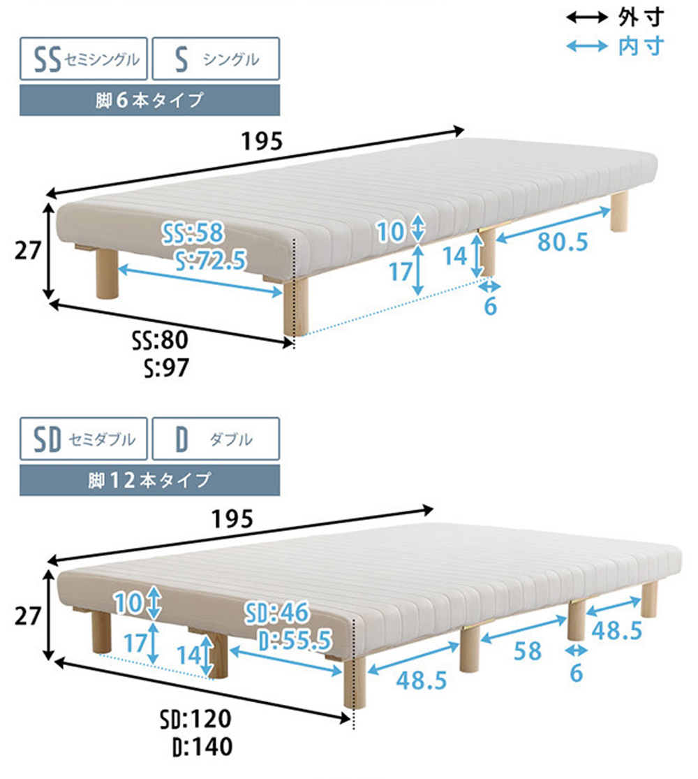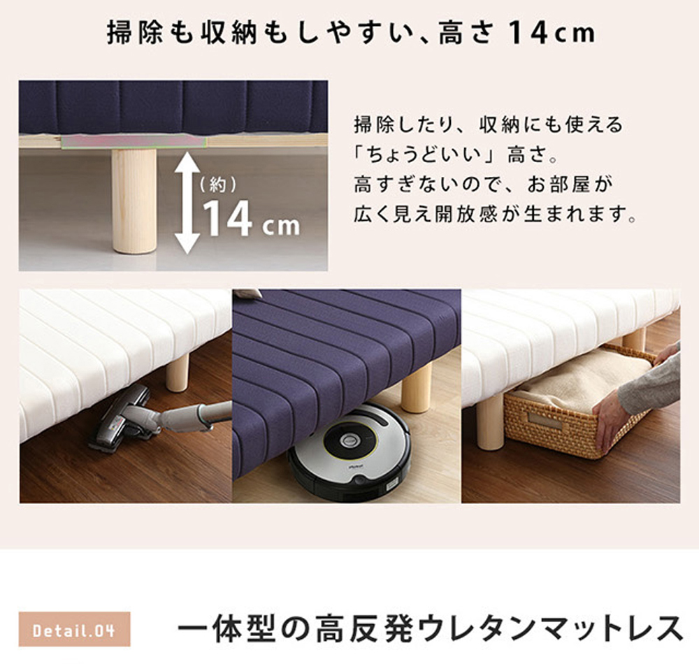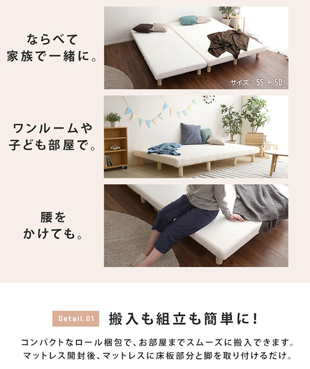一体型 脚付きロールマットレス SSサイズ。