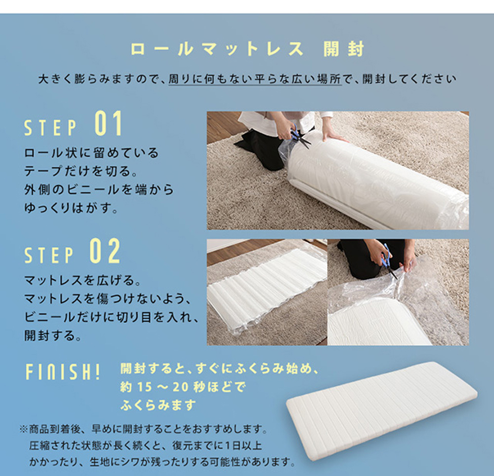 [商品について]【脚付きウレタンロールマットレス(TERRDAM-テルダ-)セミシングルサイズ】