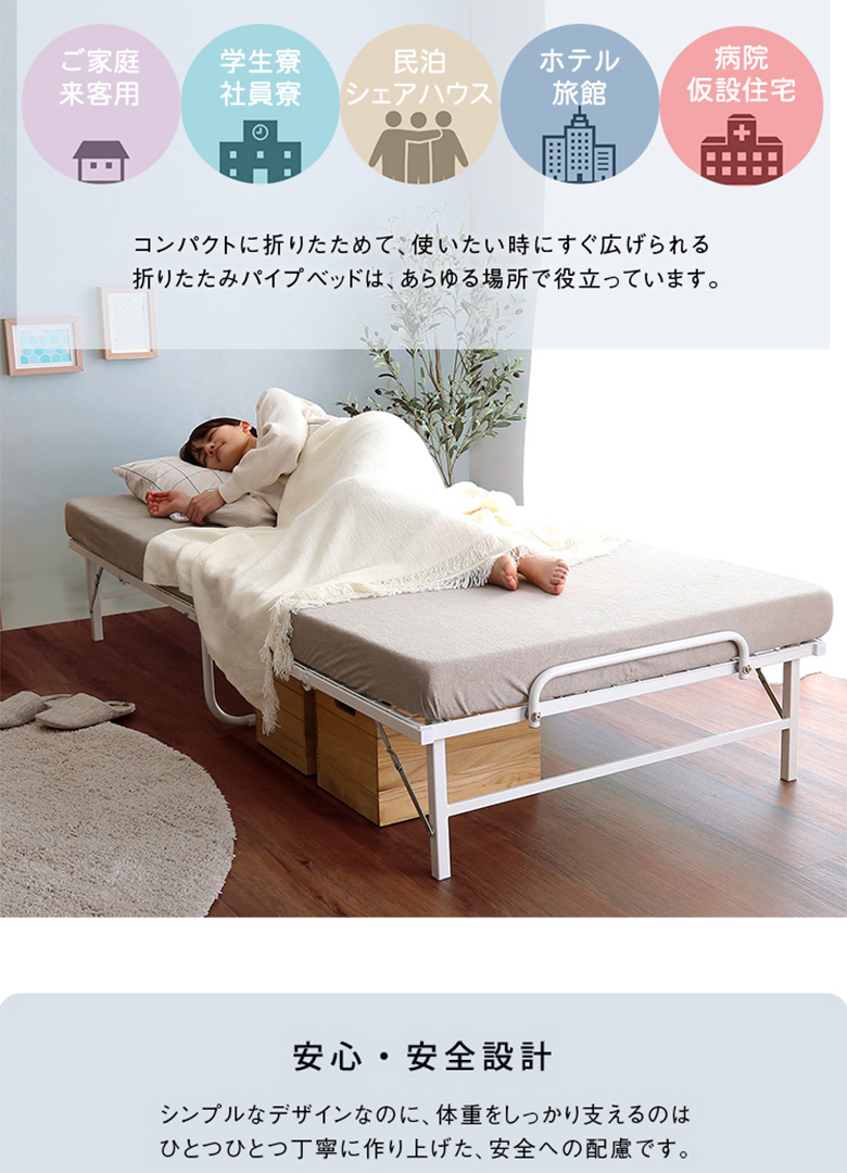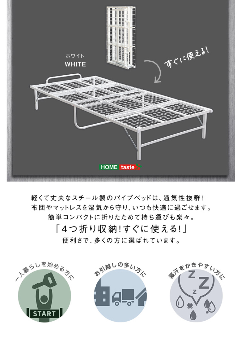 正規販売店 home taste ホームテイスト パイプ ベッド コンパクトベッド 来客用ベッド 一人暮らし 寝室 ワンルーム 仮眠用 賃貸 折り畳みベッド 通気性