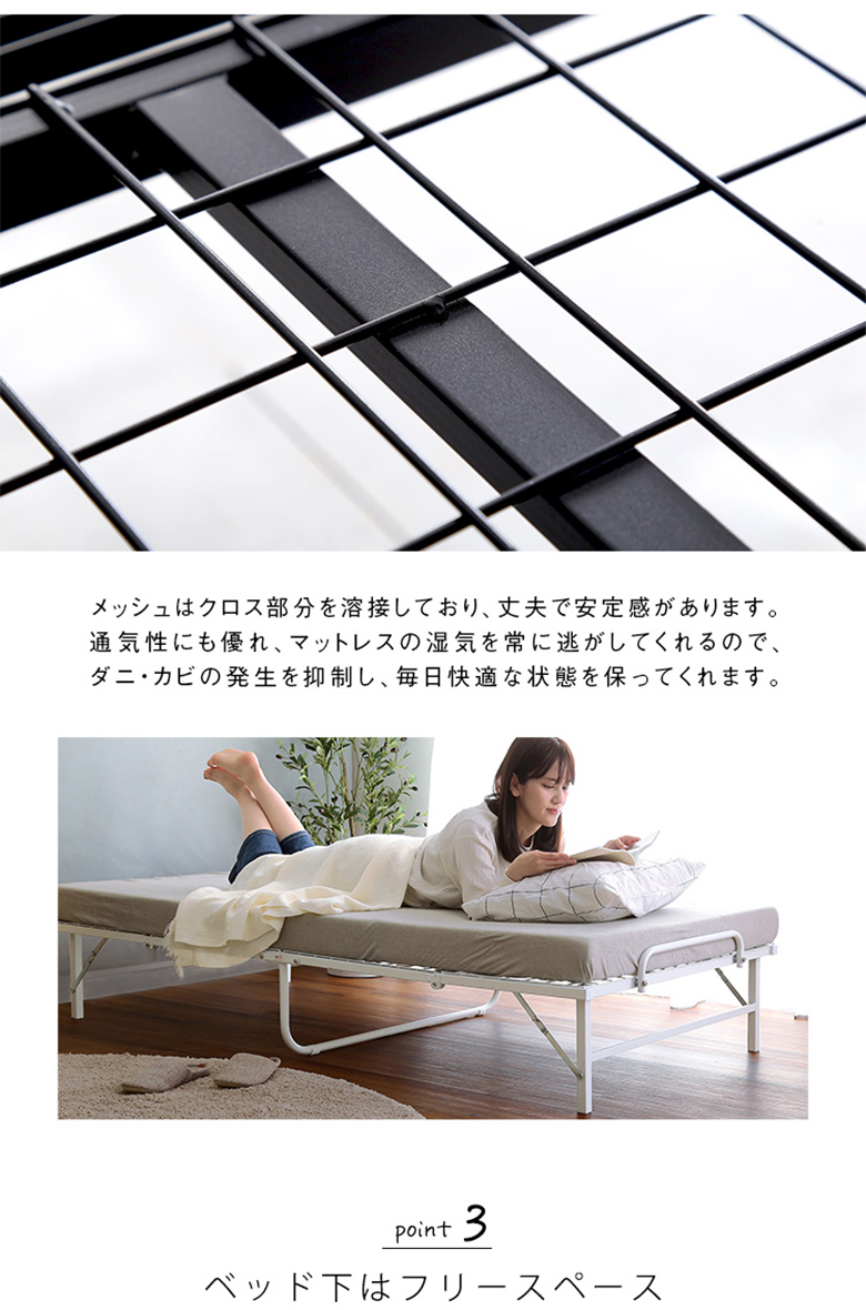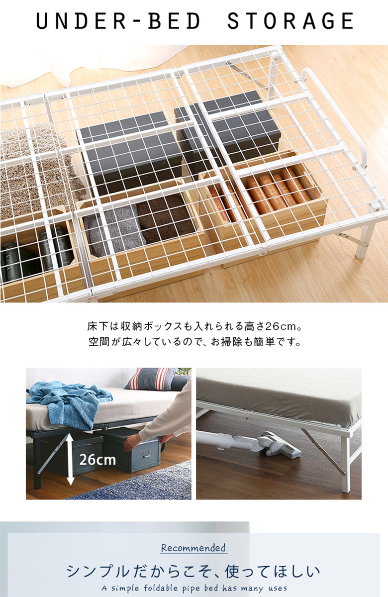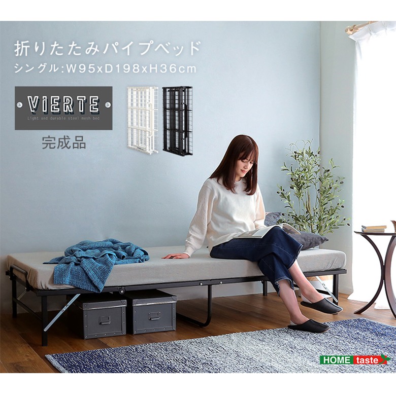[商品名]ホームテイスト【HOME taste】4つ折り折りたたみパイプベッド (Vierte フィルテ)