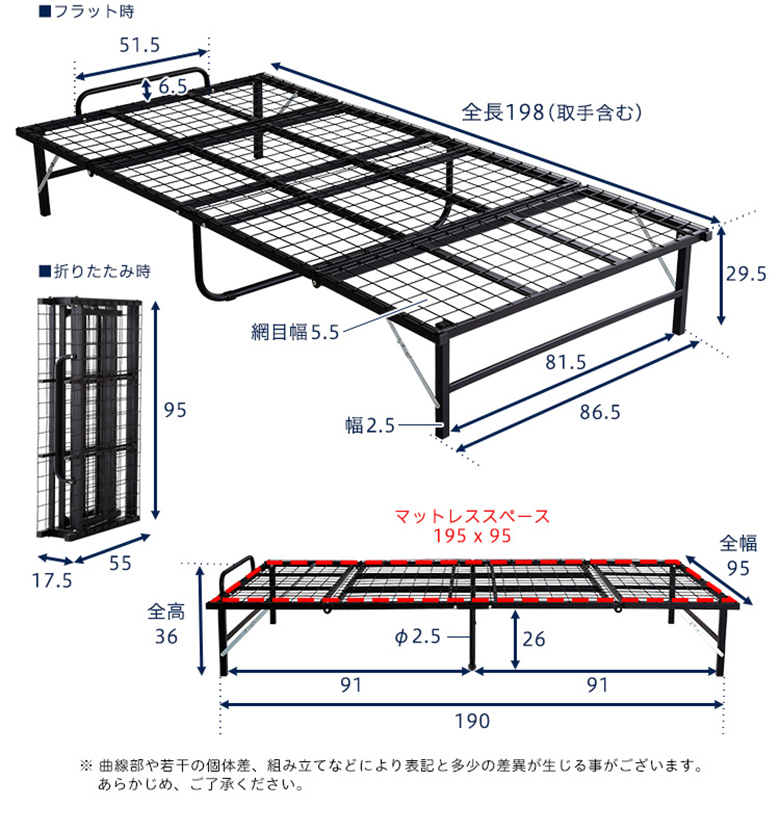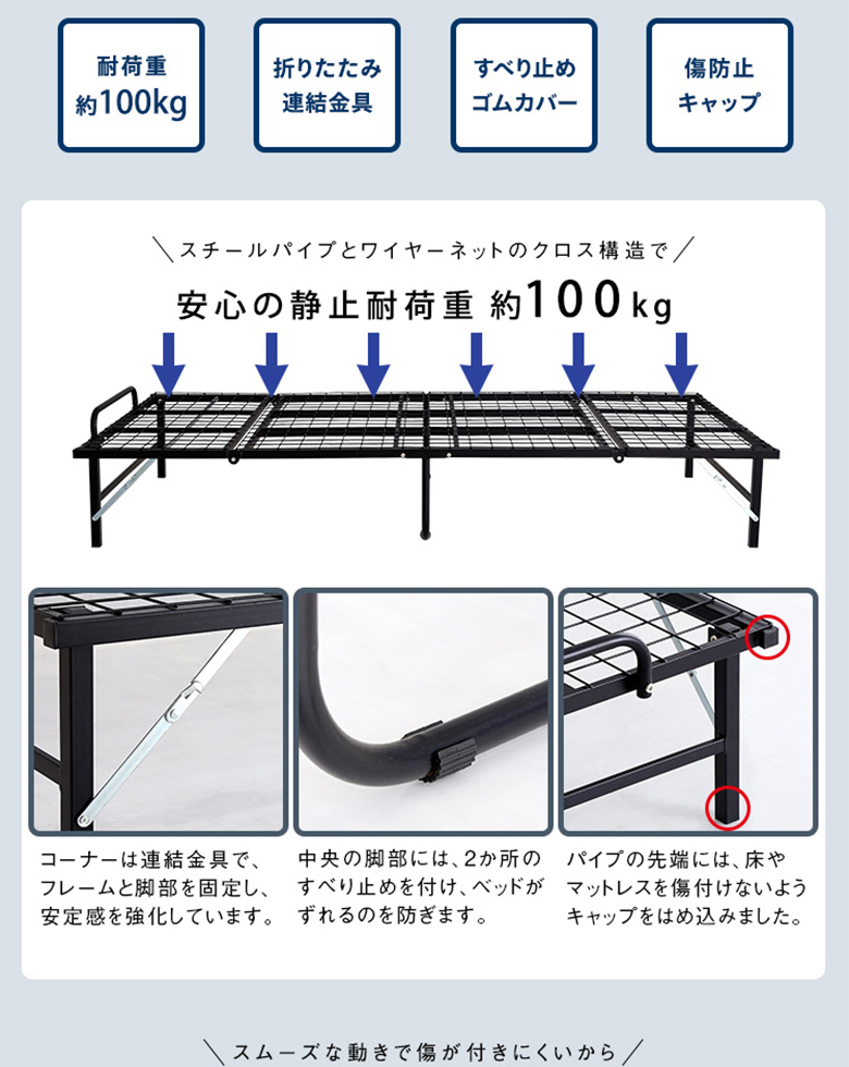 [商品について]【4つ折り折りたたみパイプベッド(Vierte-フィルテ-)】