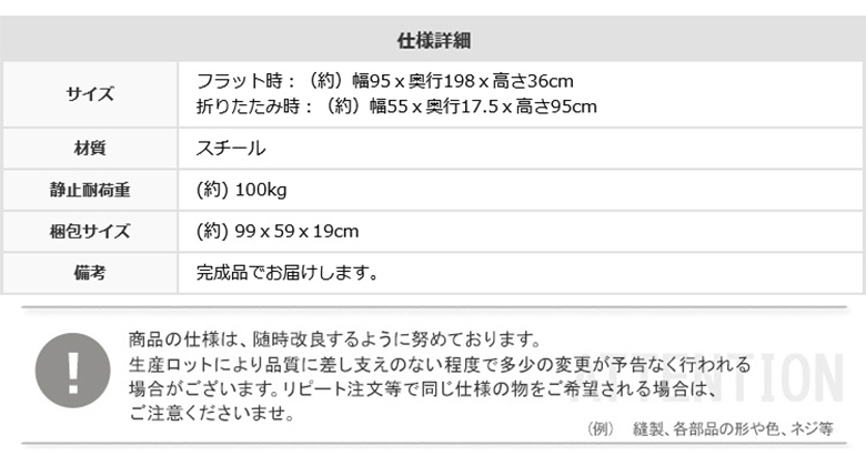 [サイズ]商品サイズ:D95 × W198 × H36cm