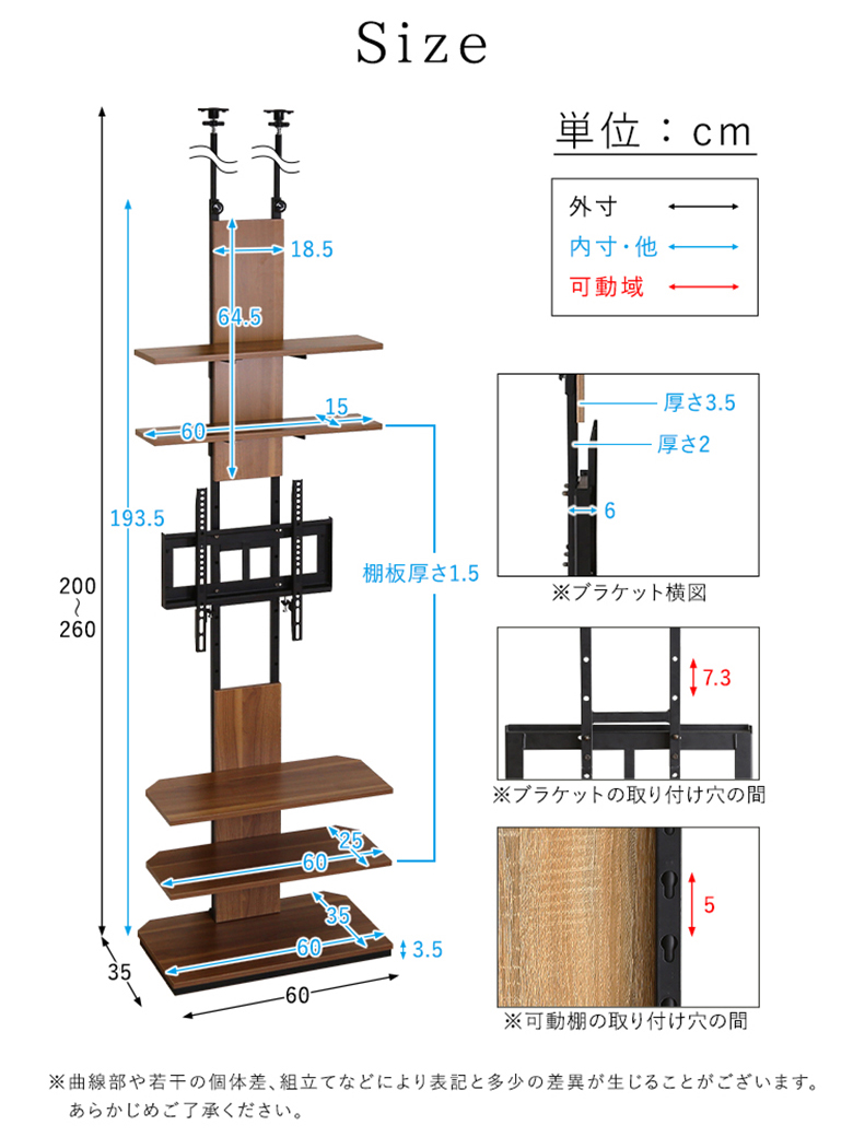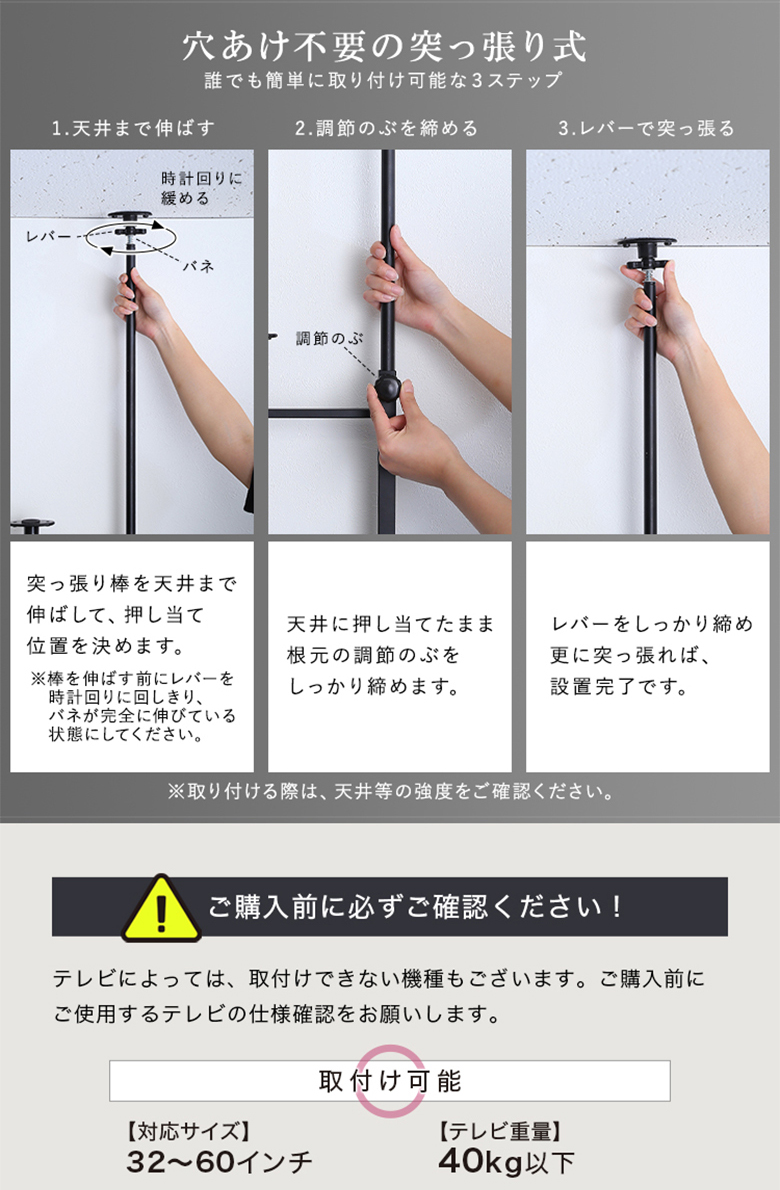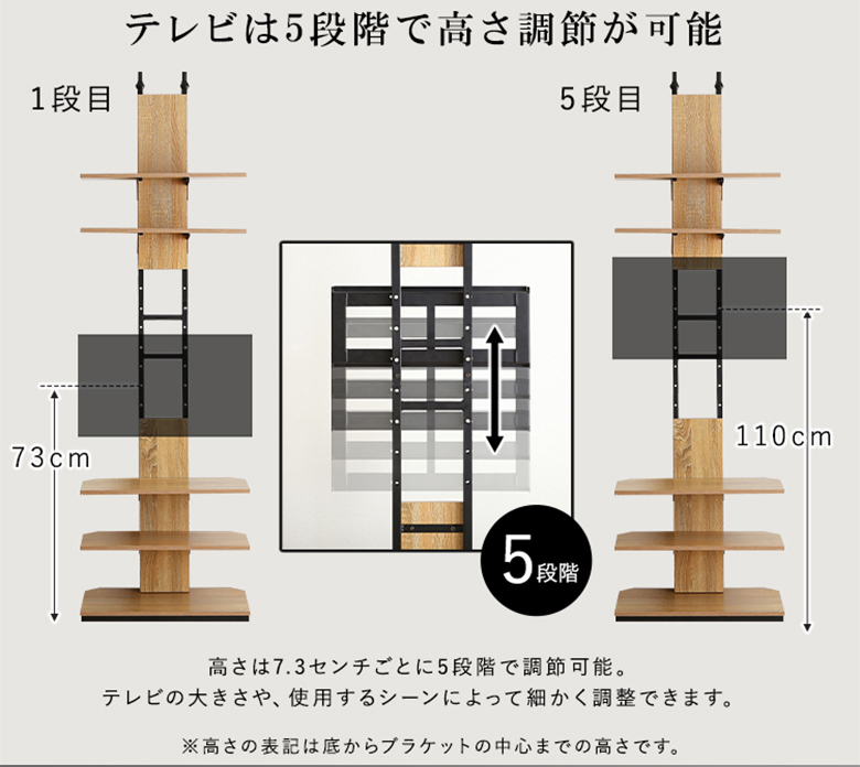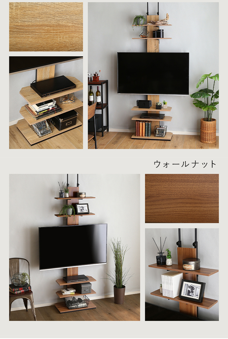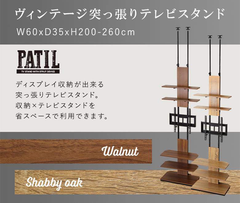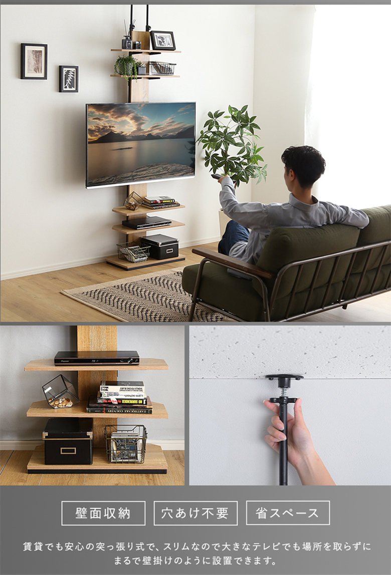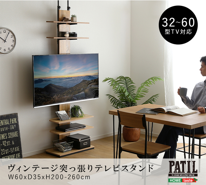 ホームテイスト HOME taste ヴィンテージ突っ張りテレビスタンド 伸縮 高さ調節可能 テレビスタンド