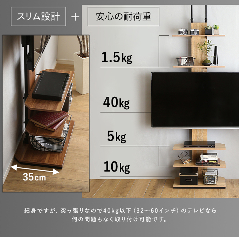 正規販売店 HOME taste ホームテイスト テレビスタンド 32〜60インチ対応 テレビ台 おしゃれ オープン収納 スリム設計 壁面収納 高さ調整 背面収納 テレビ インテリア