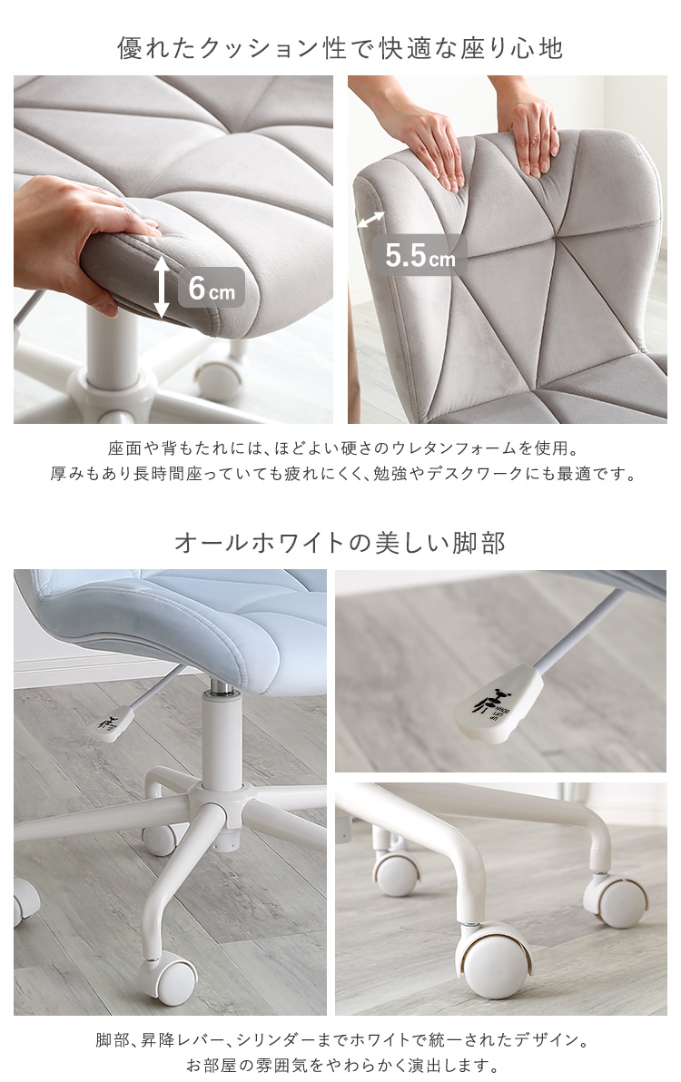 スエード調の生地で肌ざわりが良く、長時間座っても疲れにくいウレタン座面を採用した商品です!