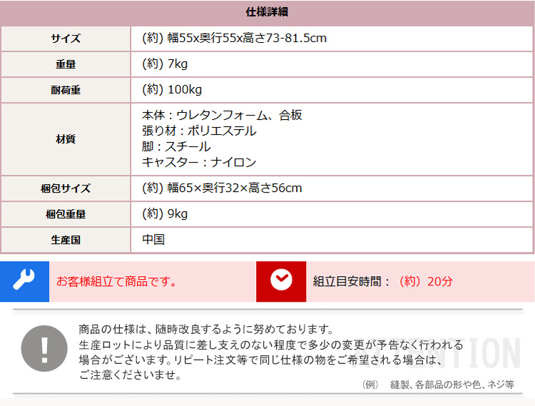 [サイズ]幅57.5×奥行57.5×高さ72.5〜81cm