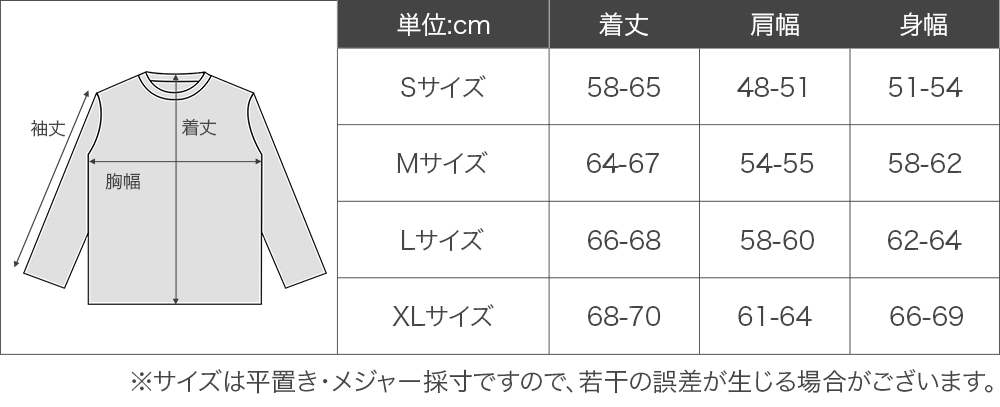 [サイズ]Sサイズ(着丈58-65cm、肩幅48-51cm、身幅51-54cm)