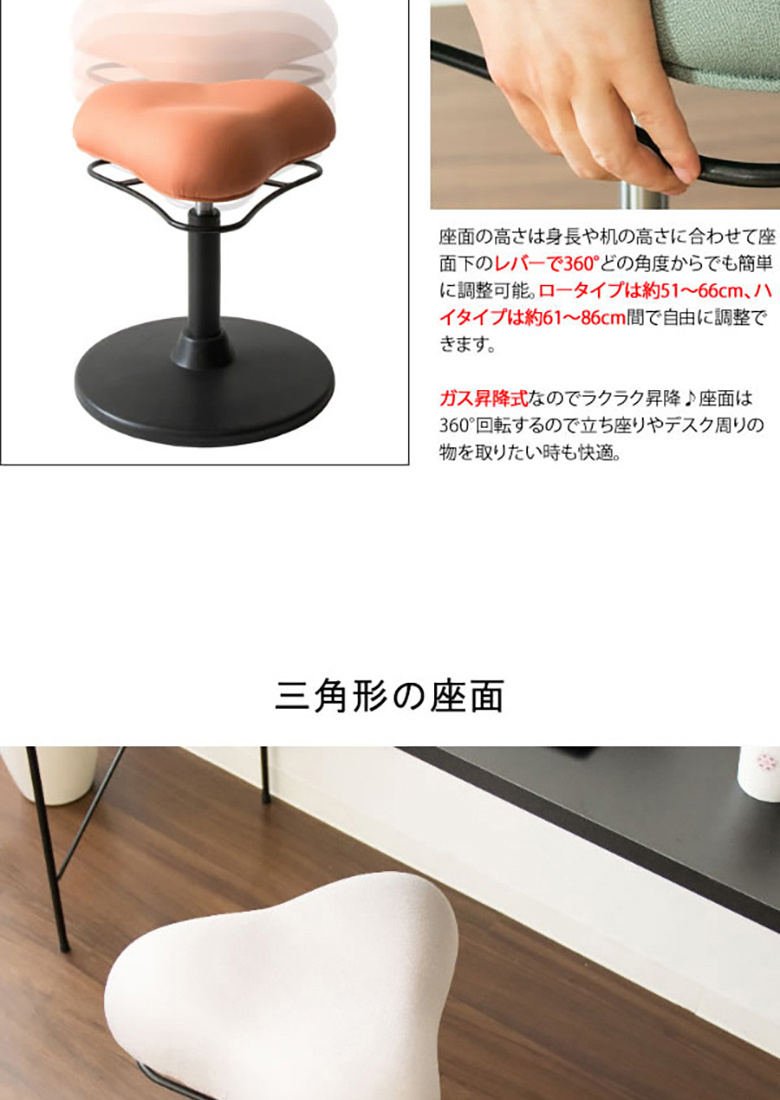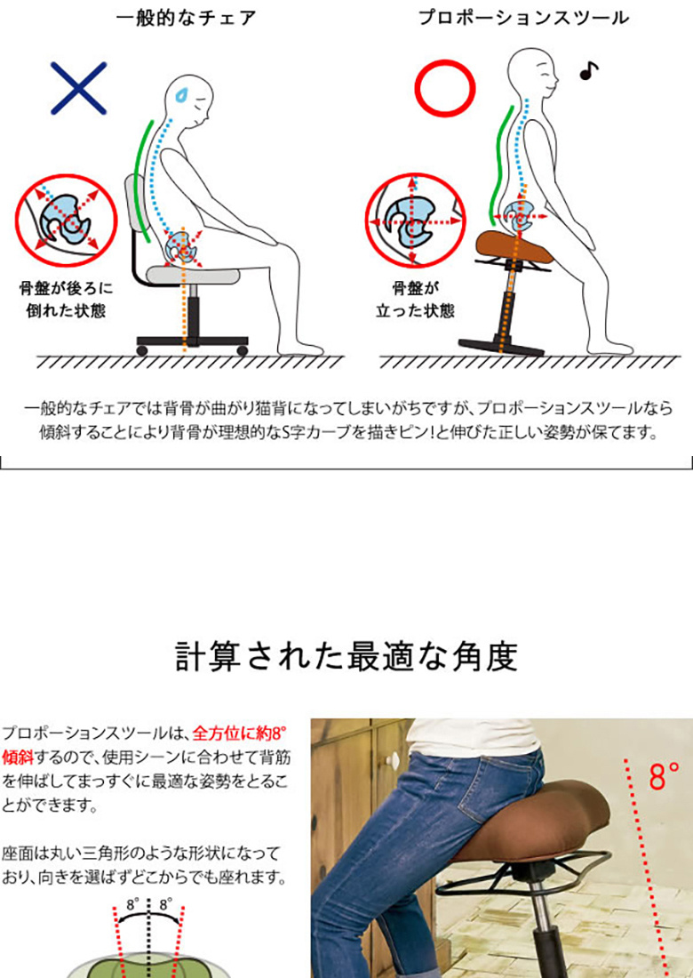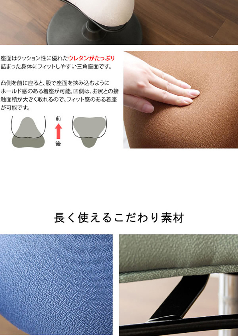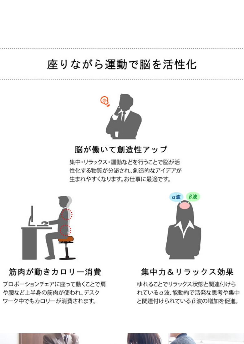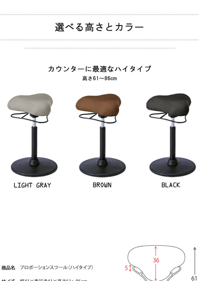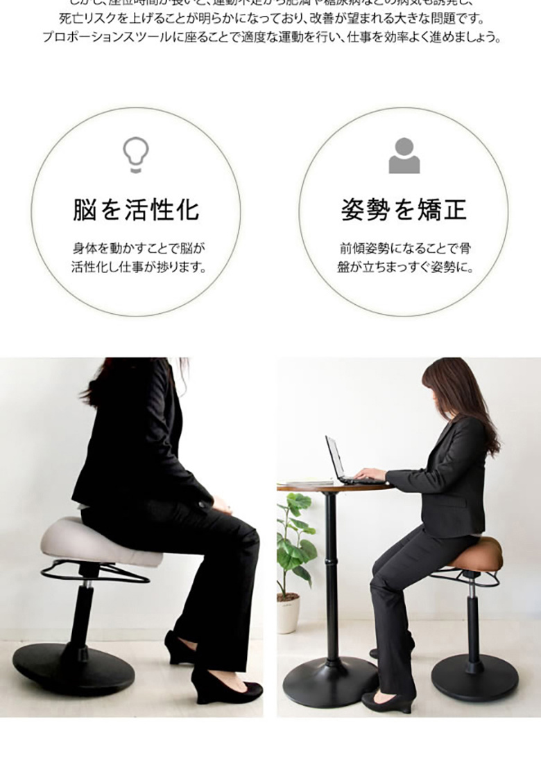 プロポーションスツールに座ることで適度な運動を行い、仕事を効率よく進めましょう。