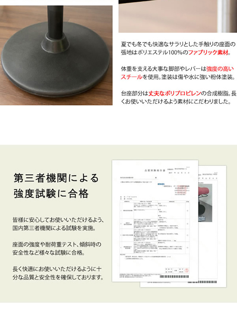 [素材]張地:ポリエステル、ウレタン、スチール(粉体塗装)、合成樹脂(ポリプロピレン)