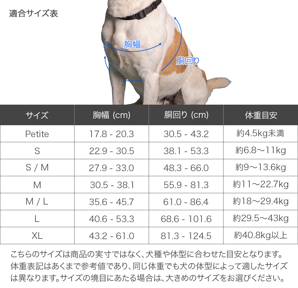 [サイズ]Petite(胴回り:30cm〜43cm、チェストストラップ:18〜20cm、ストラップ幅:1cm)