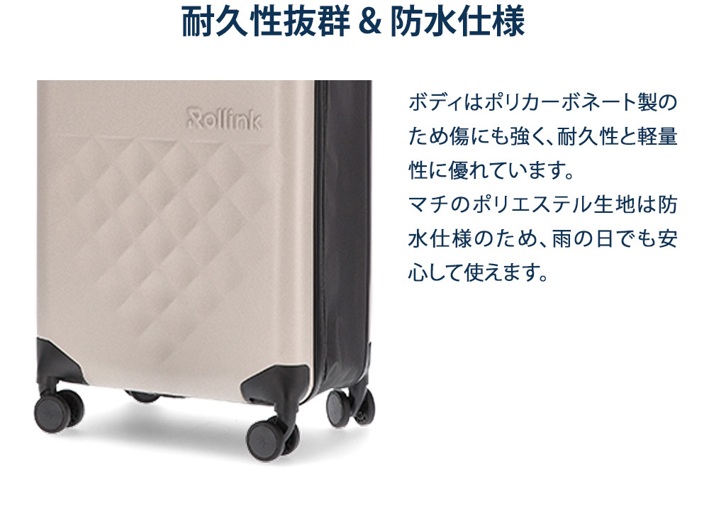 耐久性のあるポリカーボネート製ハードシェルと静かな360度回転するスピナーホイールを備えたスーツケースです。