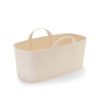 小物から書籍や新聞、食材にアウトドアグッズなど、なんでもガサッと入れて持ち歩けるので、キッチンでもリビングでもどんなシーンでも気軽に扱えます。
