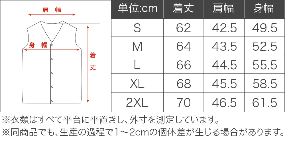 2XL(着丈70cm、肩幅46.5cm、身幅61.5cm)
