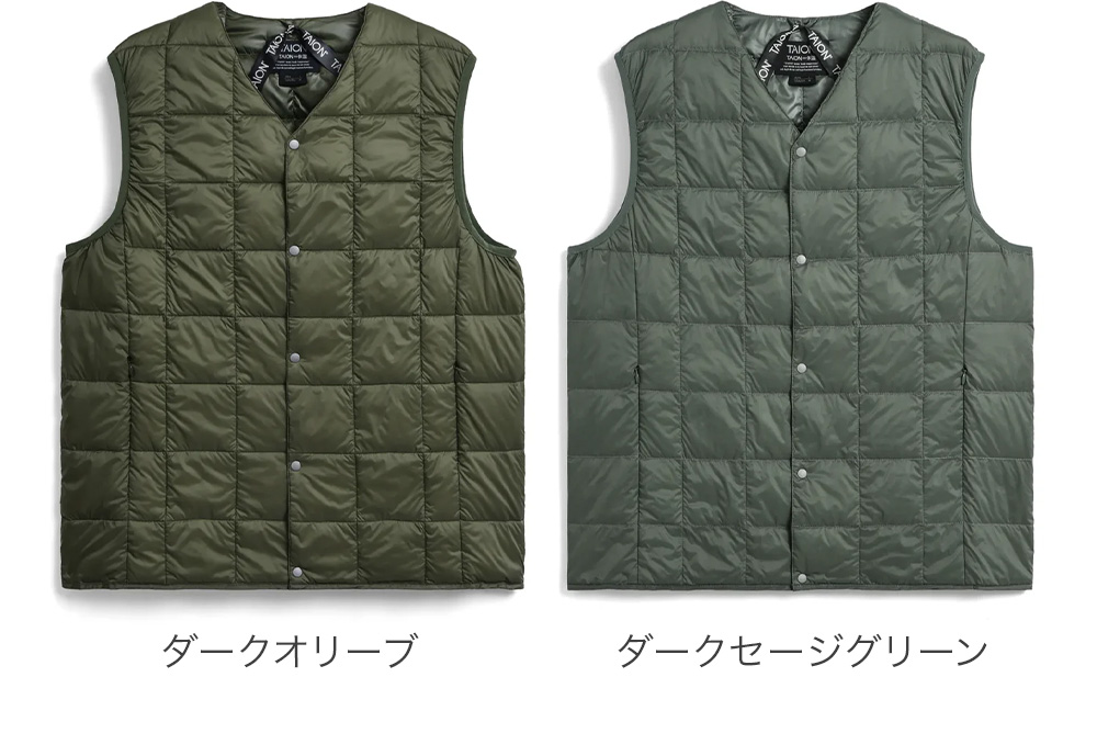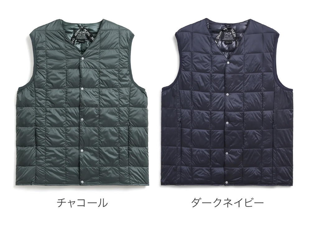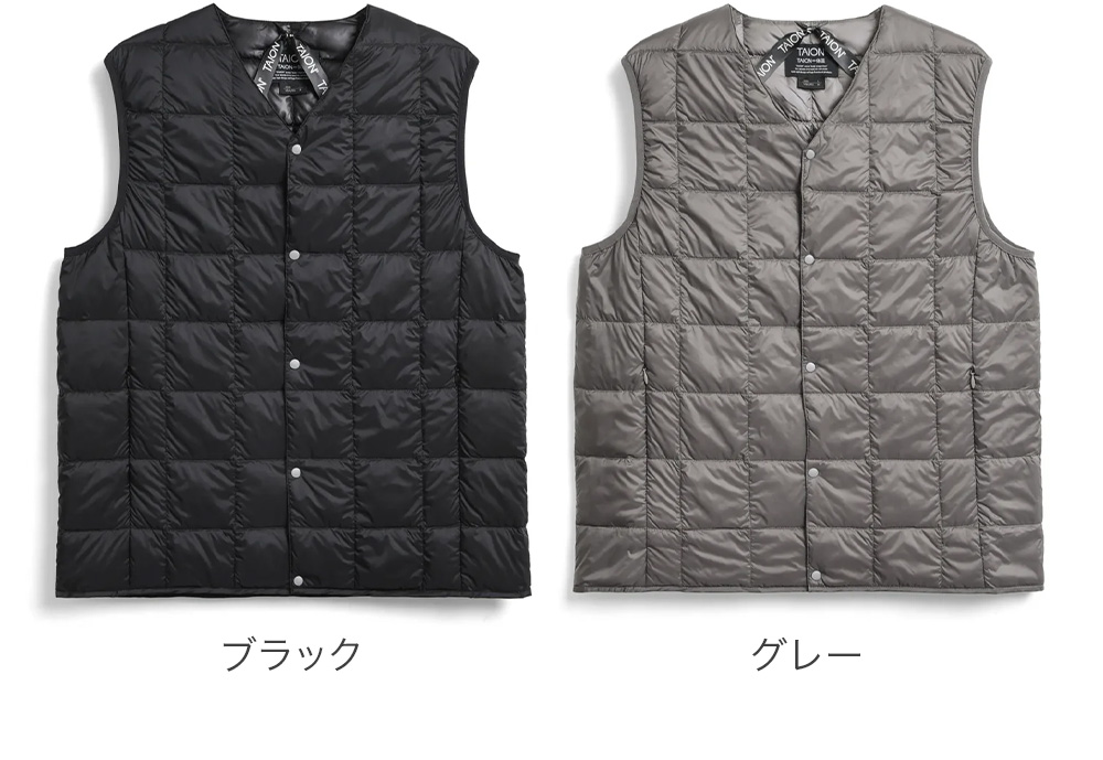 正規販売店 タイオン ダウンベスト インナーダウン ダウンジャケット ライトダウン 防寒 温かい 軽量 おしゃれ 男性 アウトドア 上着 羽織り Vネック 前開き 保温 袖なし