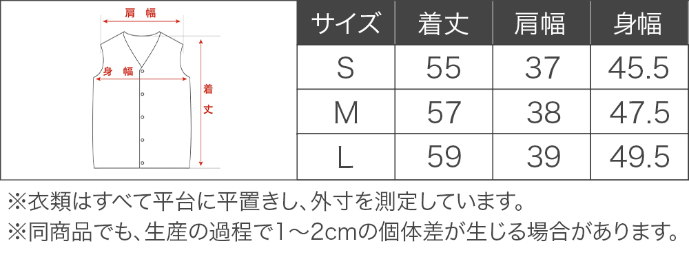 M(着丈57cm、肩幅38cm、身幅47.5cm)