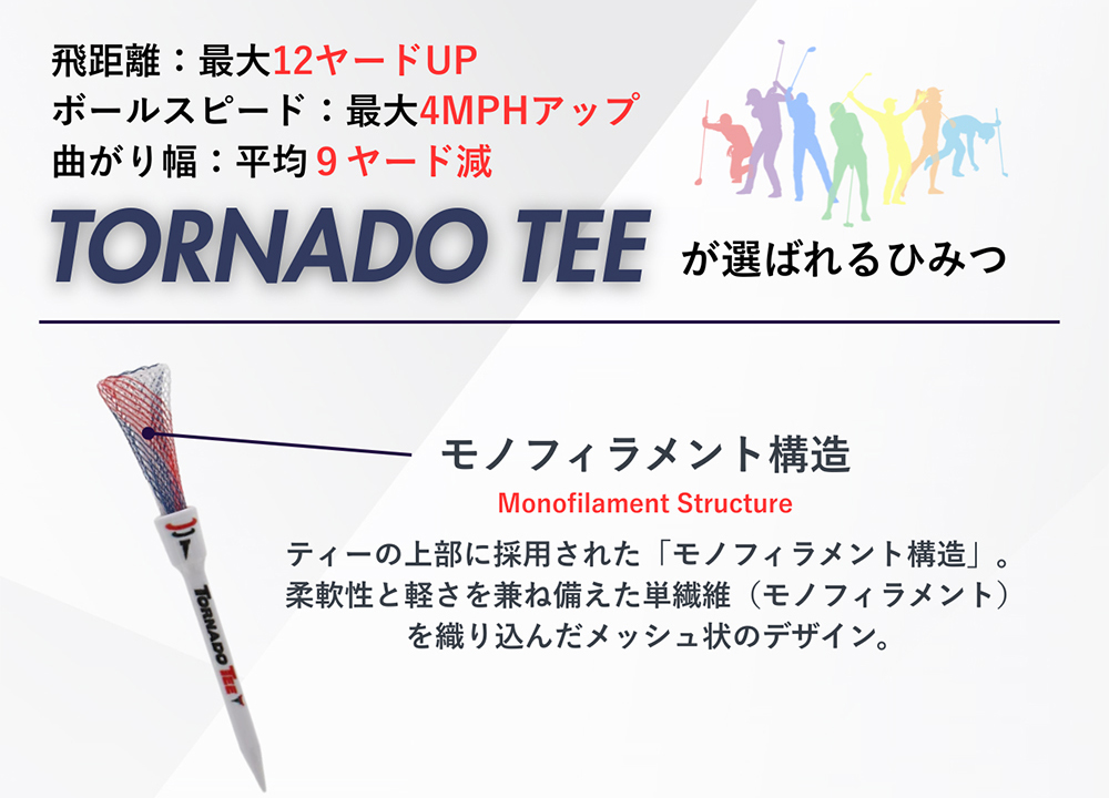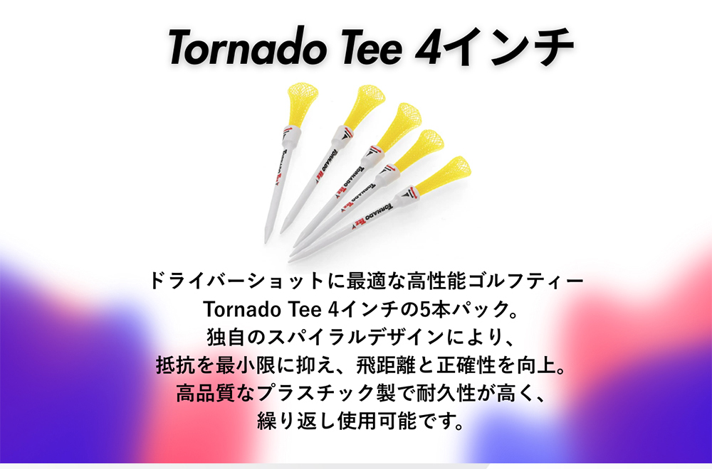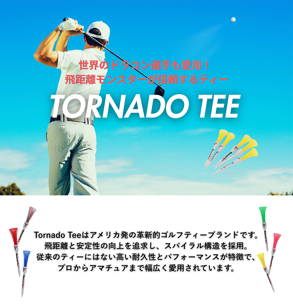 Tornado Teeはアメリカ発の革新的ゴルフティーブランドです。飛距離と安定性の向上を追求し、スパイラル構造を採用。