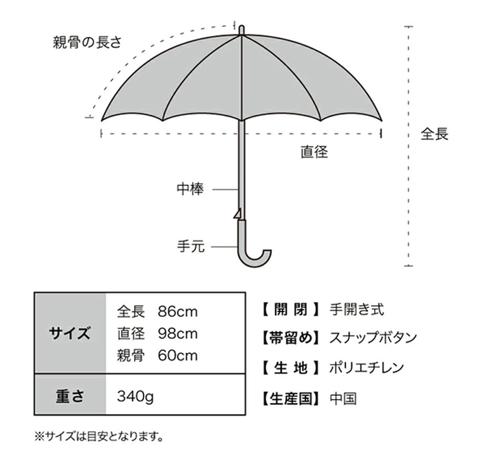 [サイズ]全長86cm、直径98cm、親骨60cm