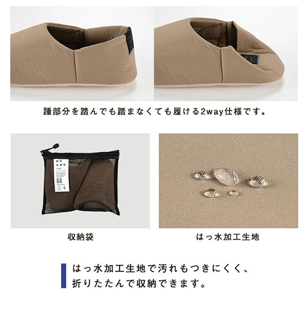 2wayタイプのコンパクトに折り畳めるスリッパで、いつでもどこでも快適に