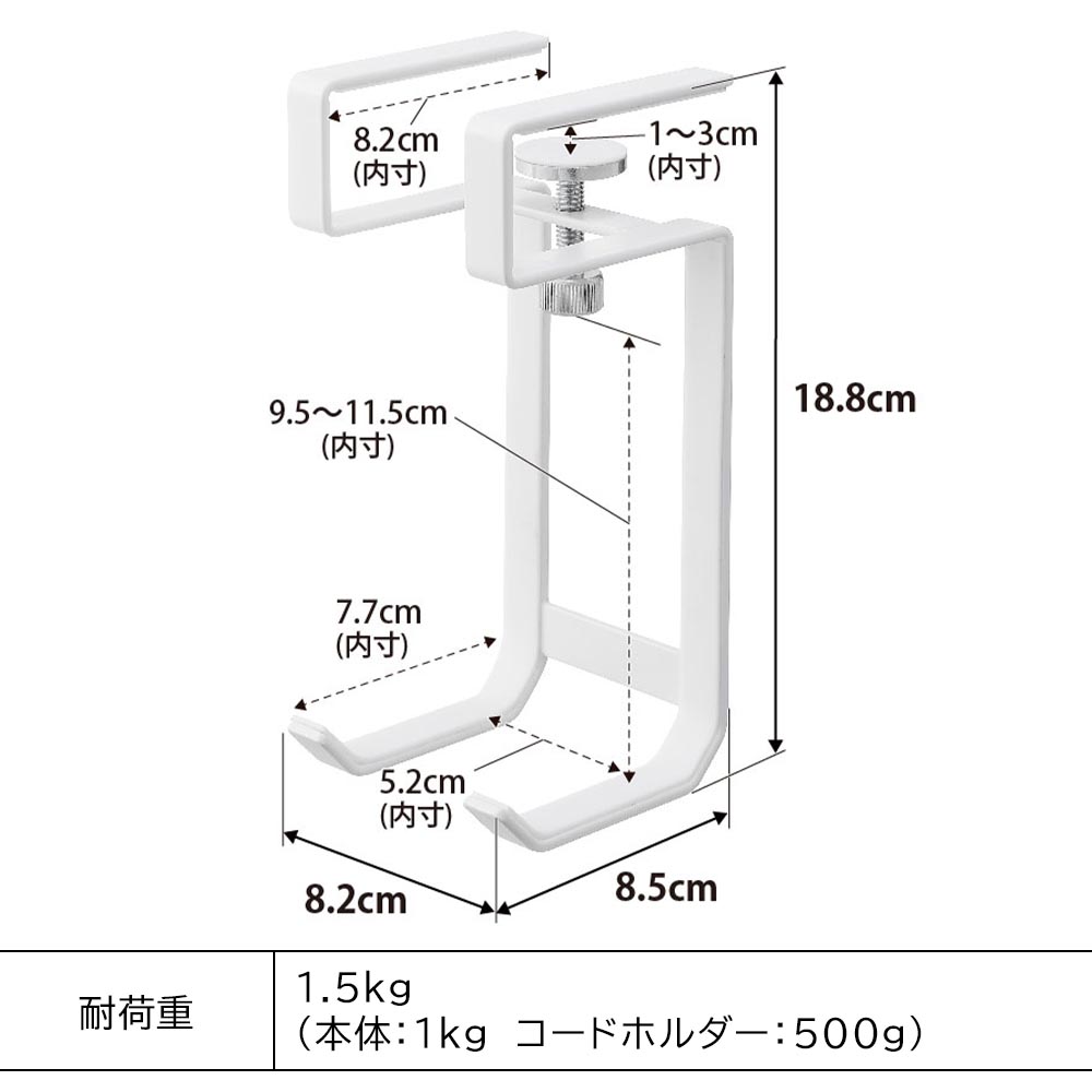 | 耐荷重 1.5kg(本体:1kg コードホルダー:500g) |