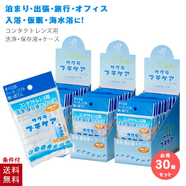 30個セット サクラプチケア コンタクトレンズ コンタクト 洗浄液 携帯用 ソフト ハード 保存液 ミニ 旅行用