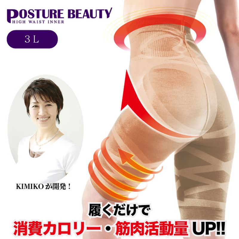 シェモア ポスチュアビューティ ハイウエストインナー 3L シャンパンベージュ 下着 加圧 エクサパンツ 骨盤矯正 レディース ボディライン シェイプアップ 姿勢 K