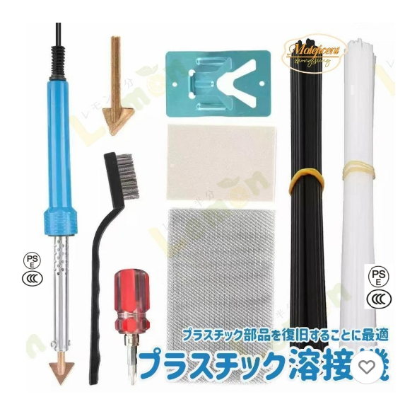 プラスチック溶接機 溶接修理キット プラスチックリペアキット プラリペア ハイブリッドタイプ樹脂溶接機 プラ補修用 ダッシュボード 110V 豊富な付属品付き