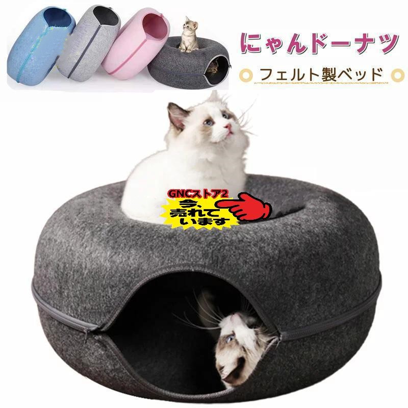 にゃんドーナツ 洗える フエルト製 ペットベッド ドーム型 猫 キャットハウス トンネル ねこハウス おもちゃ ペットソファー 寝床 ハウス