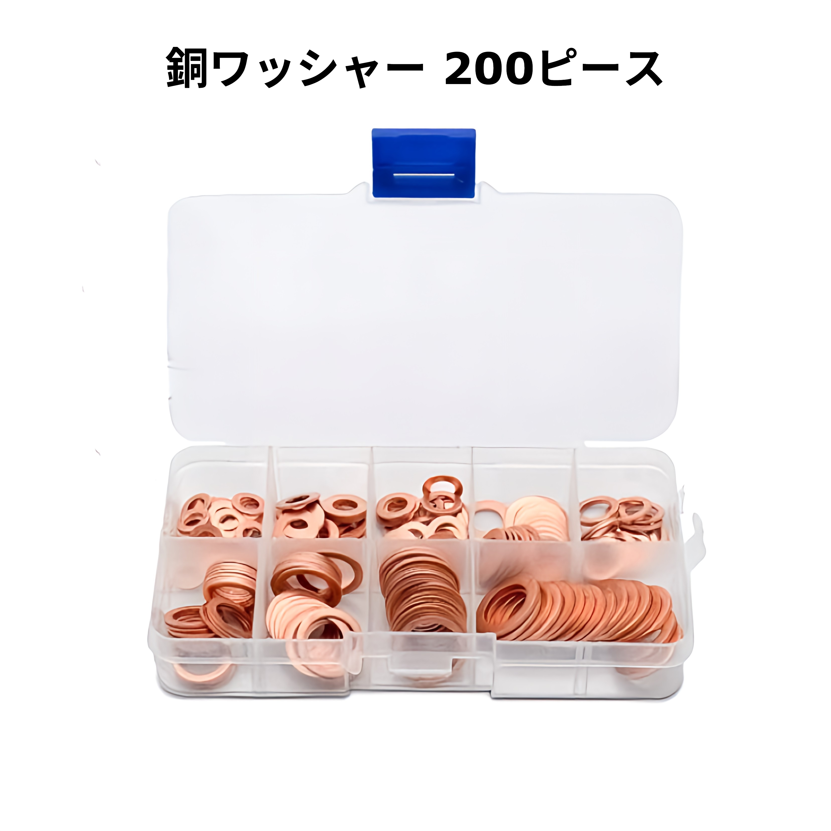 銅ワッシャー 銅リング 200pcsドレンワッシャー m5/m6/m8/m10/m12/m14 密封リング 銅クラッシュ シールガスケットセット 耐久性 収納ケース付き