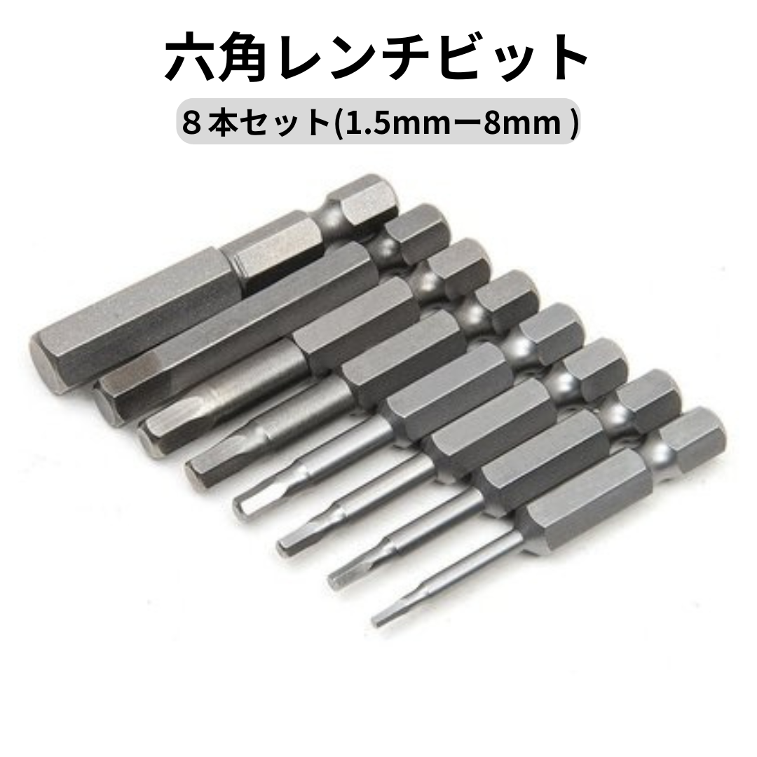 六角レンチビット 8本セット インパクトドライバービット 精密ドライバー 六角? 6.35mm 磁気吸着 電動ドライバー ビット 1.5mmー8mm ドリル 50mm長六角ビット