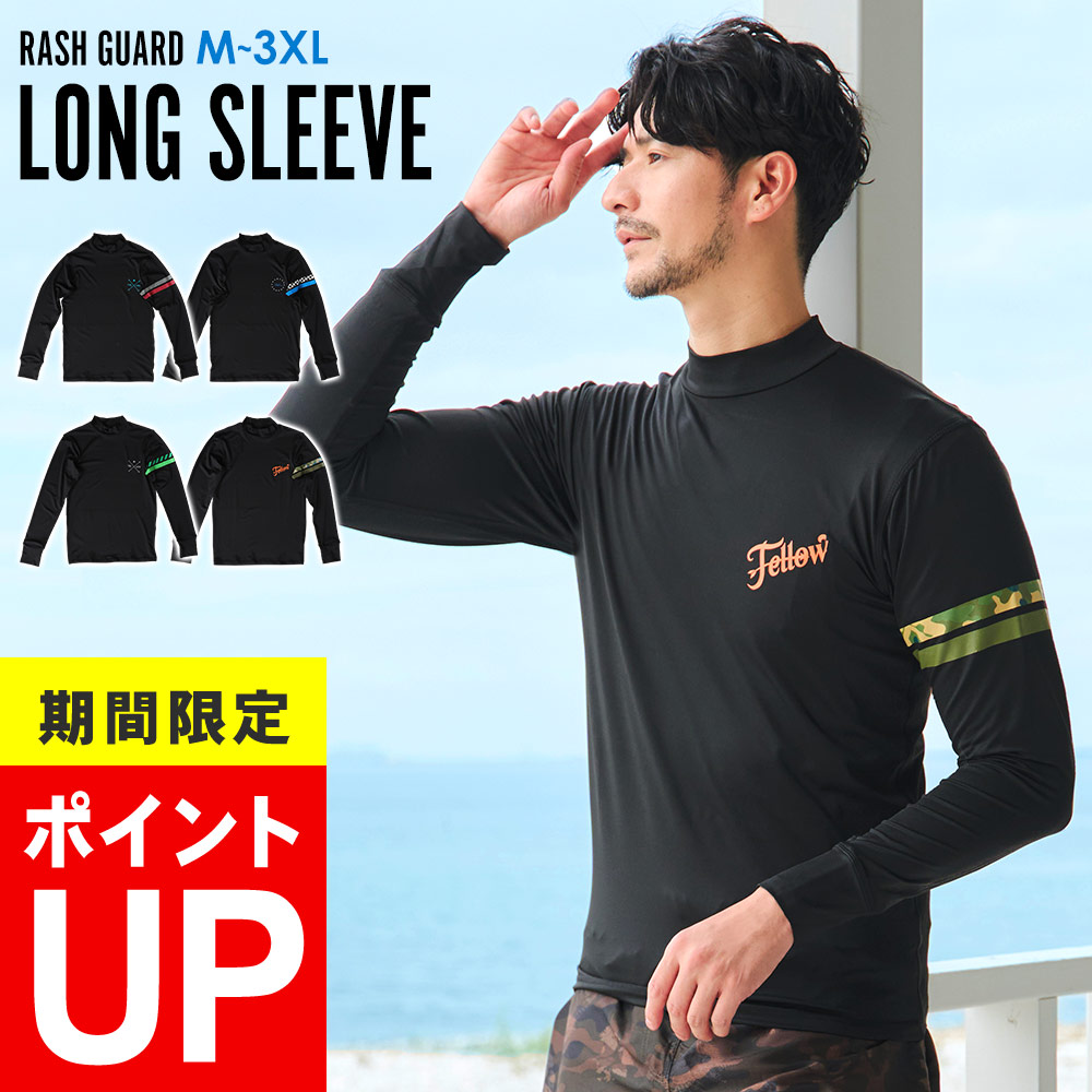 FELLOW ラッシュガード メンズ 長袖 スタンドカラー UPF50+ 紫外線対策 水陸両用 ロングスリーブ 接触冷感