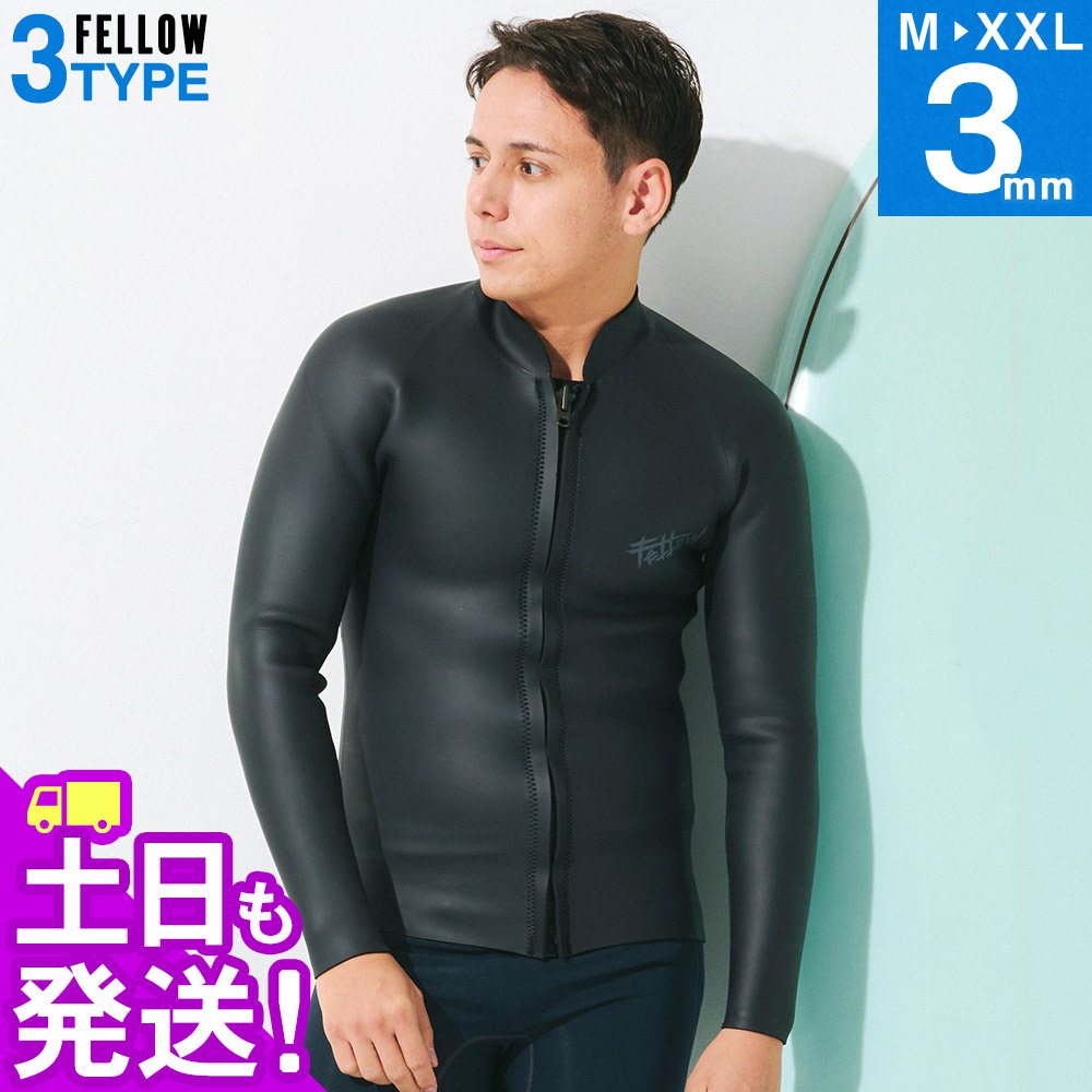 FELLOW ウェットスーツ タッパー メンズ ALL3mm スキン ラバー フロントジップ サーフィン 日本規格 SUP
