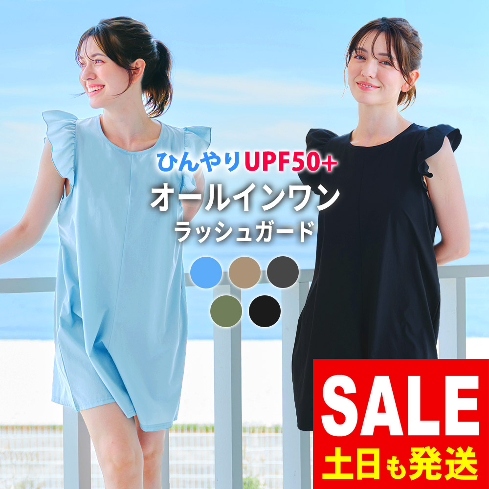 【最大26%お得!】FELLOW ラッシュガード レディース オールインワン フリル ロンパース ジャンプスーツ UPF50+ UV遮光 接触冷感 水陸両用 特価