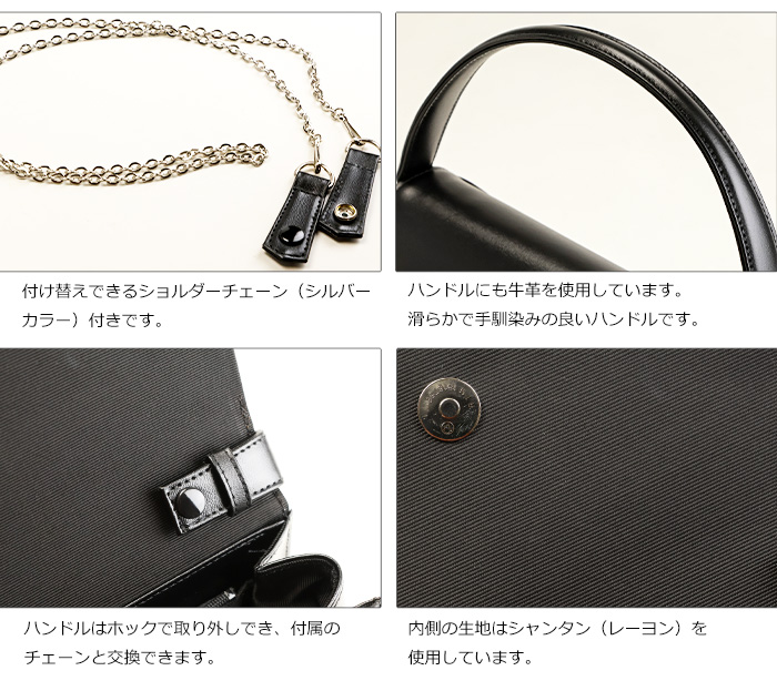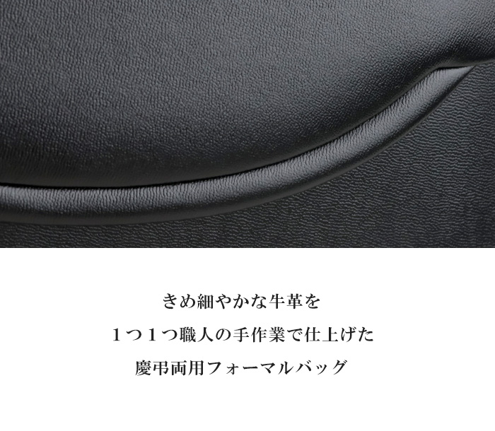 国産の上質な牛革を使用した、高級感あふれる慶弔両用のブラックフォーマルバッグです。