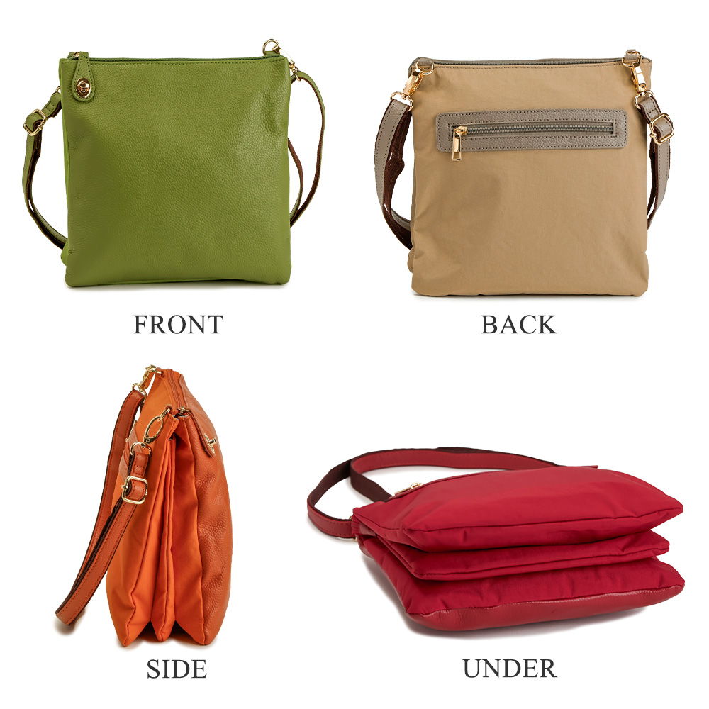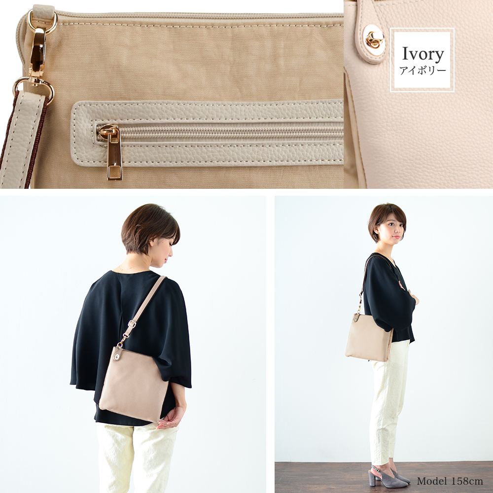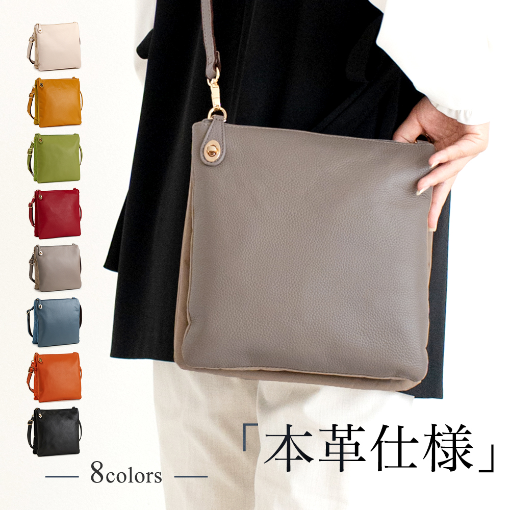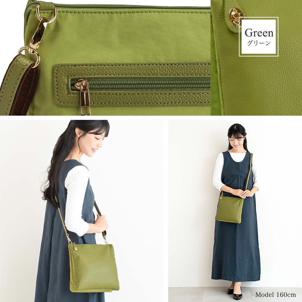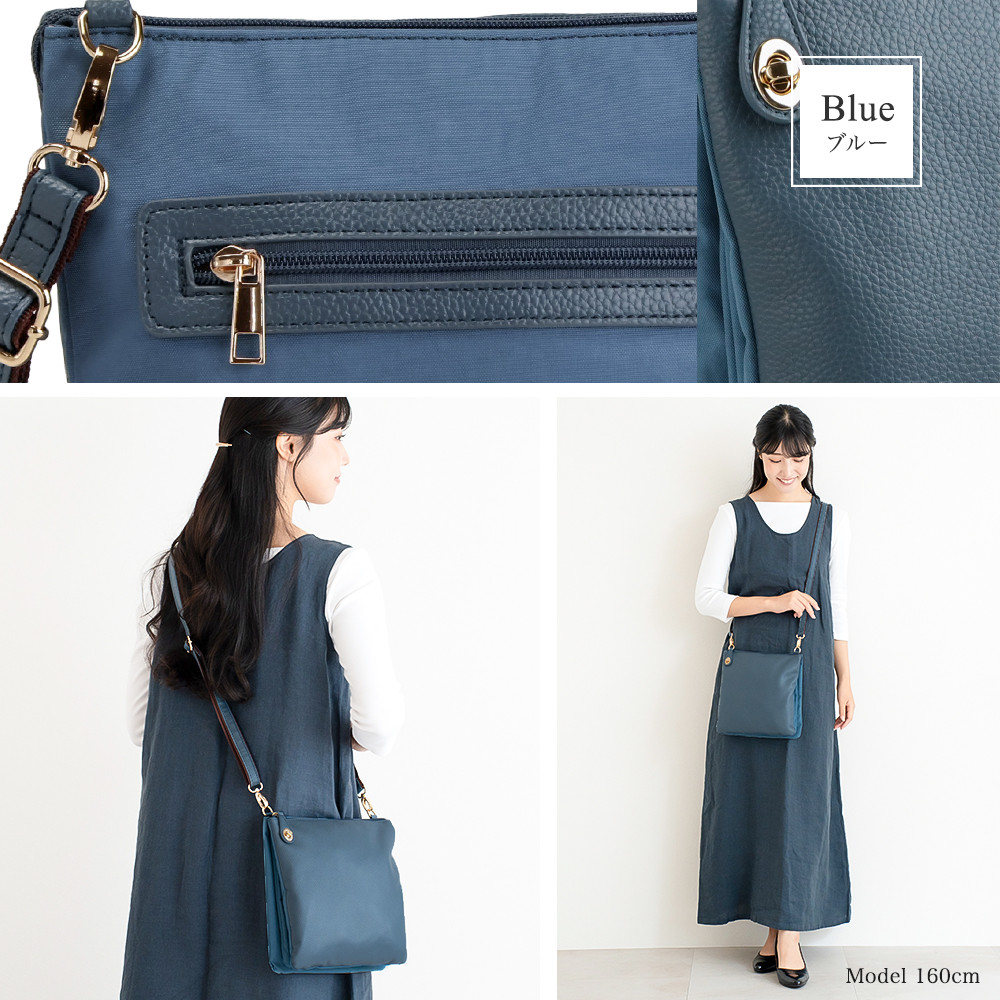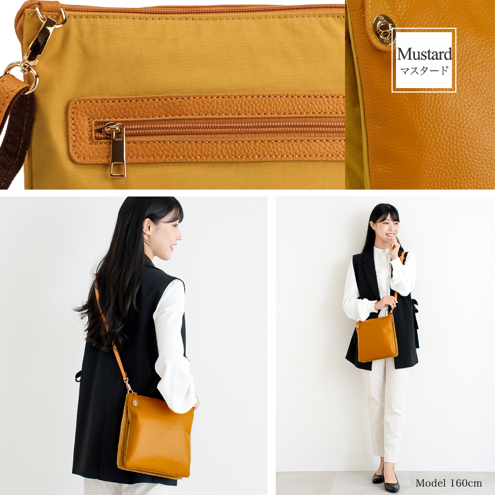 <牛革レザー&ナイロン ショルダーバッグ 大人 きれいめ>
