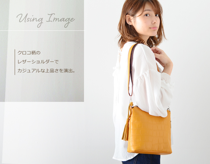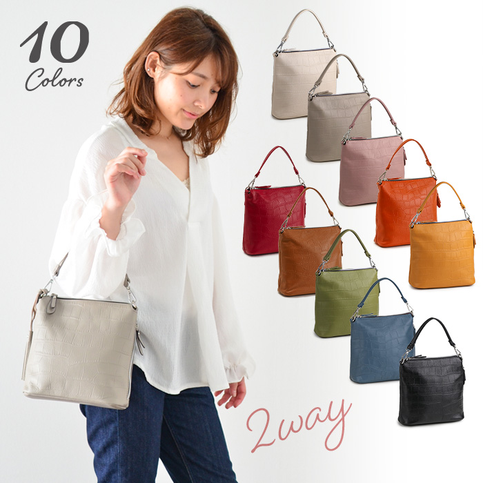 <クロコ柄レザー 2WAYショルダーバッグ>