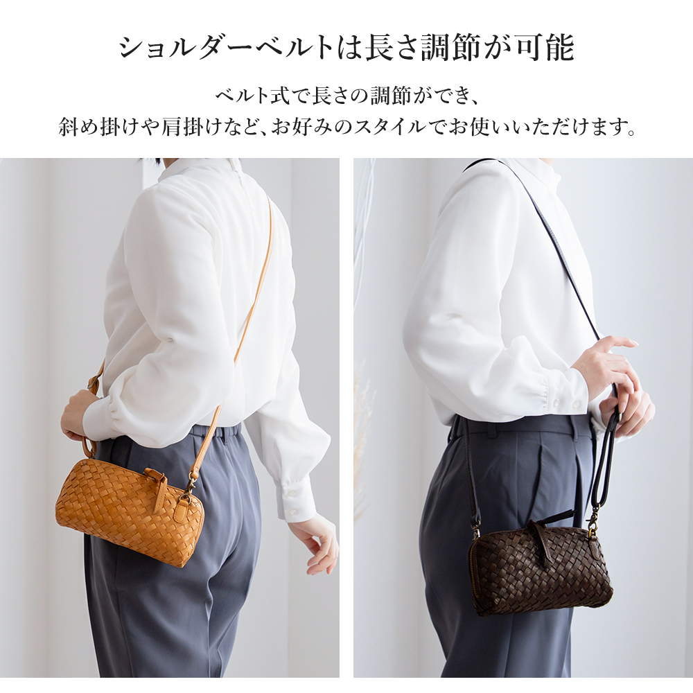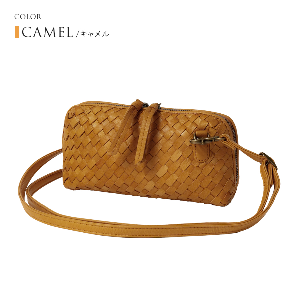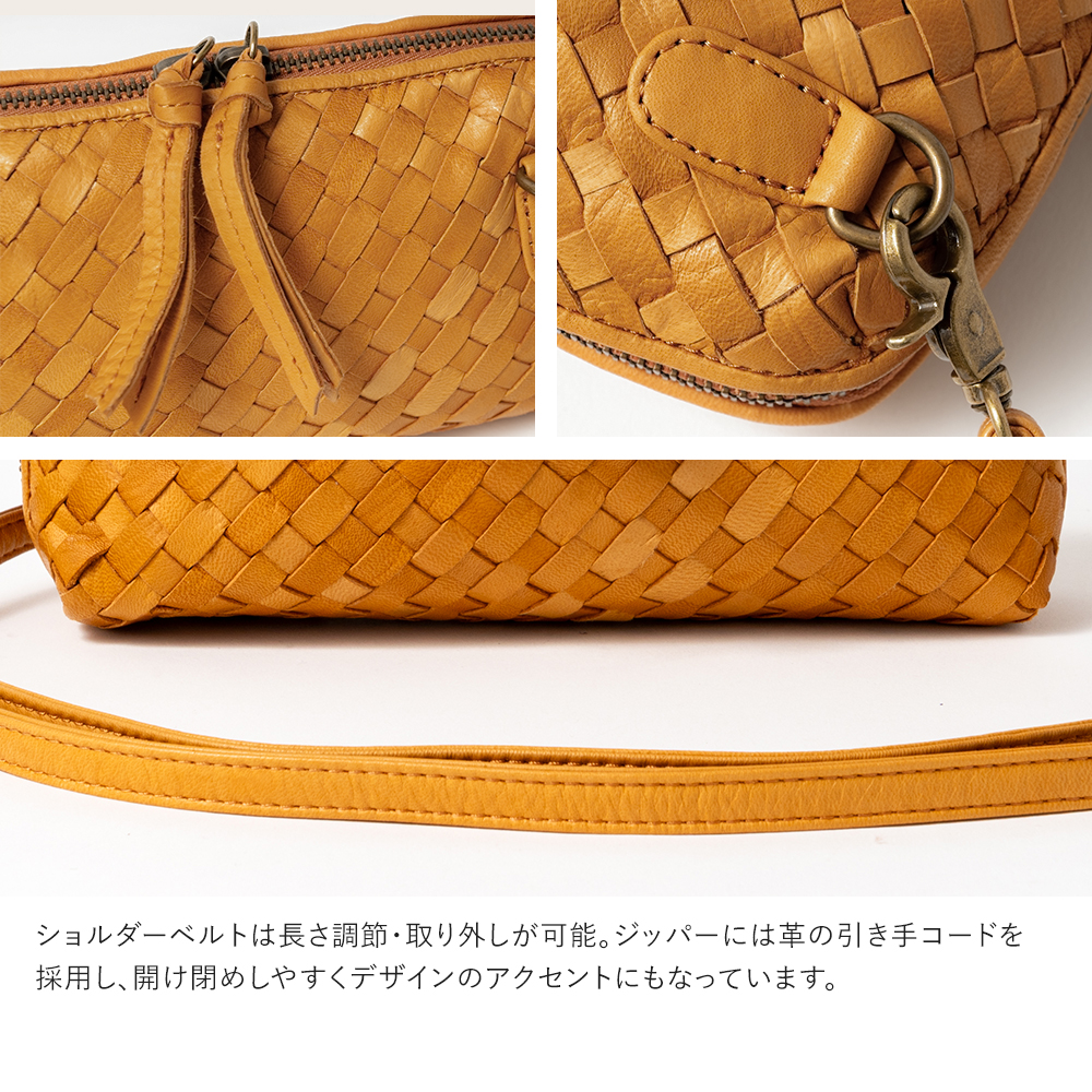 編み込みデザインと、使い込むほどに手に馴染む本革の風合いが魅力です。