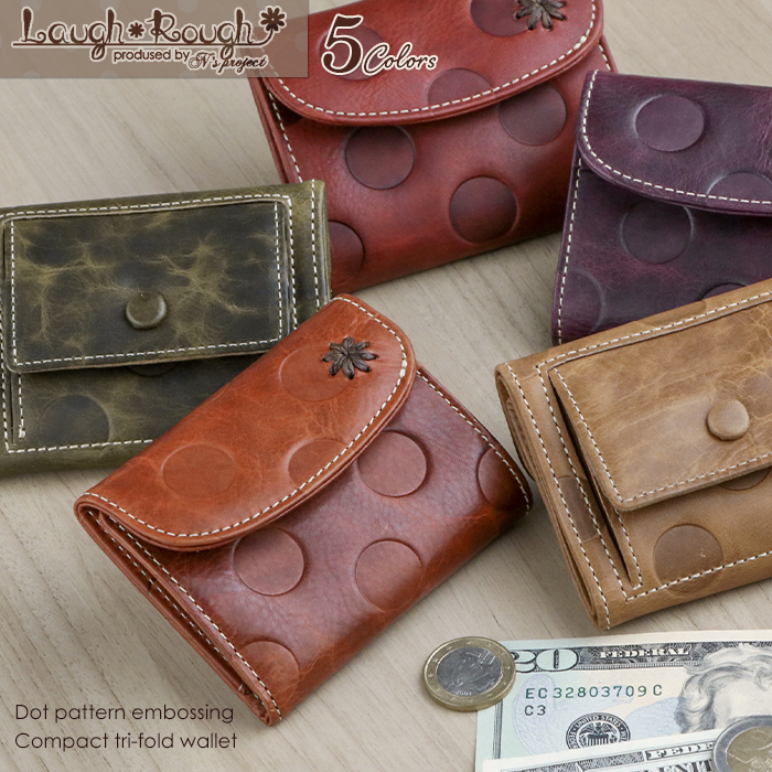 ミニ財布 三つ折り レディース コンパクト 小さい財布 本革 小さめ Laugh*Rough ラフラフ ドット 春財布