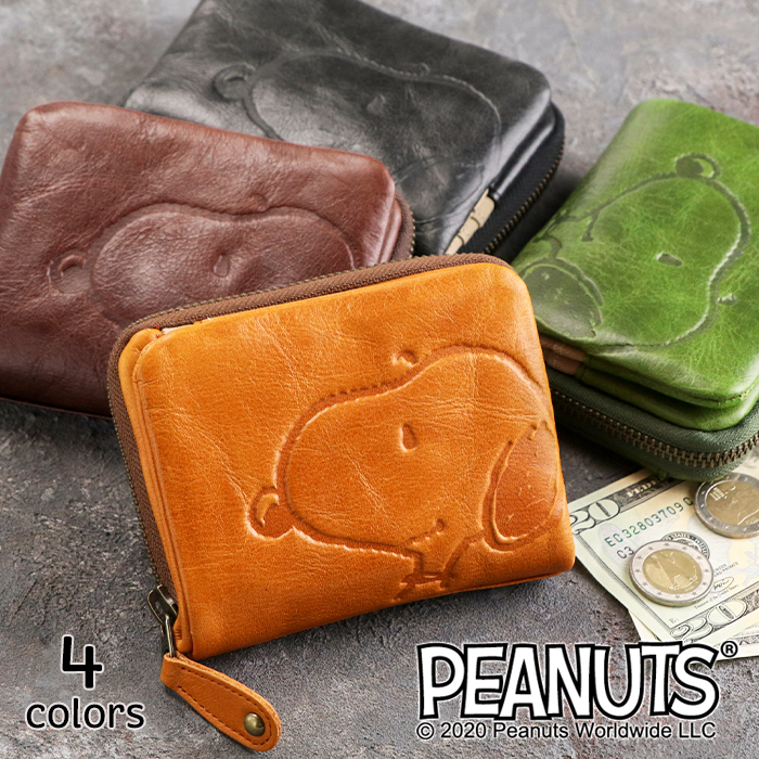 スヌーピー 財布 革 レディース 二つ折り財布 本革 ラウンドファスナー snoopy マザーズ スヌーピーグッズ 女性 プレゼント 春財布